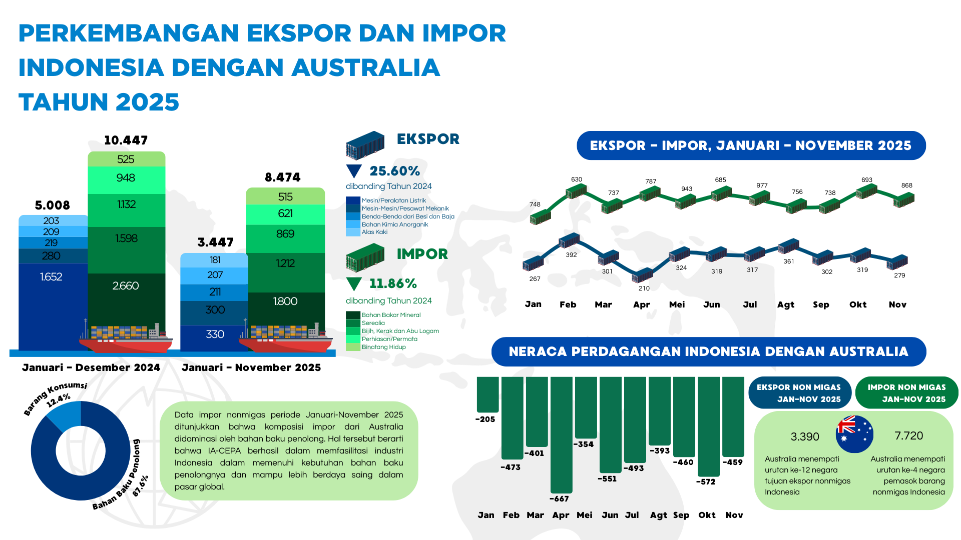 - Meningkatkan kerja sama yang lebih luas untuk mengoptimalkan pemanfaatan perjanjian. IA-CEPA dapat memfasilitasi peningkatan perdagangan yang berkelanjutan melalui 'Economic Cooperation' dalam kerangka IA-CEPA.