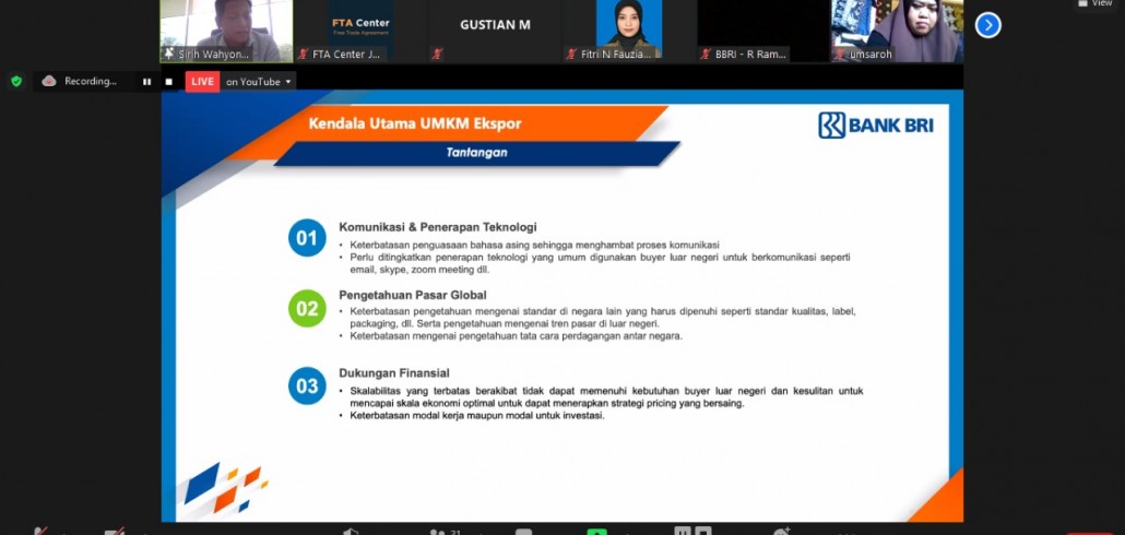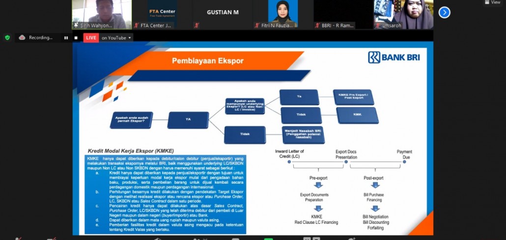 Webinar Pemanfaatan Akses Pembiayaan UKM Ekspor di PT. Bank BRI